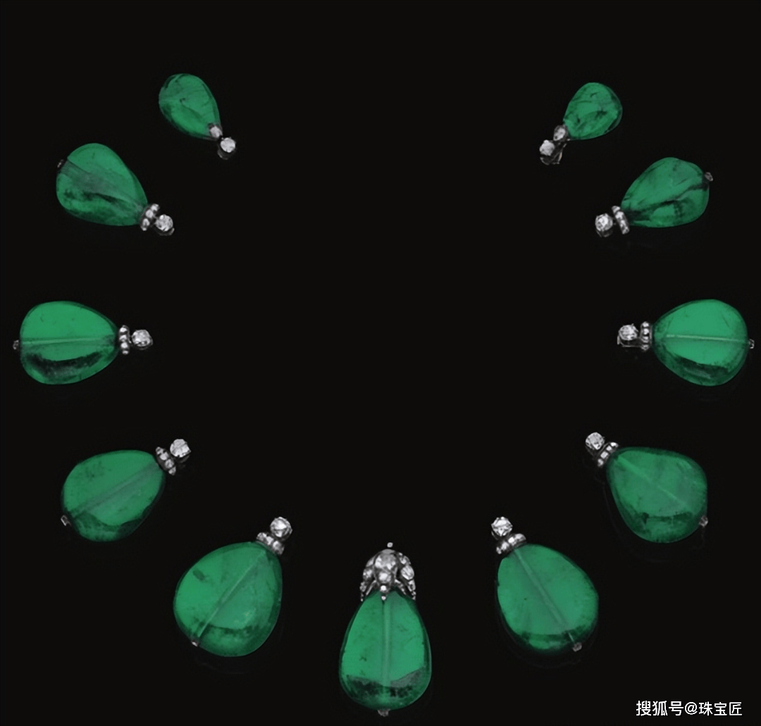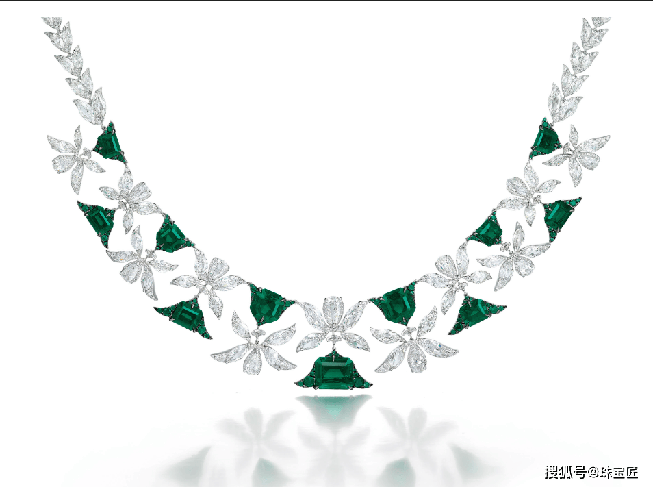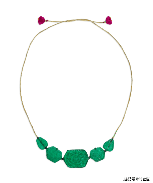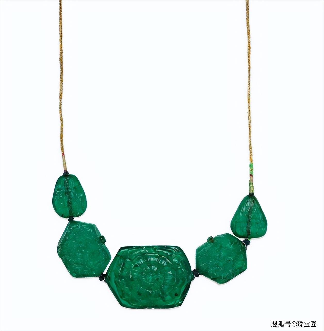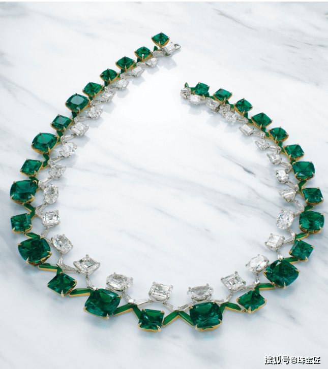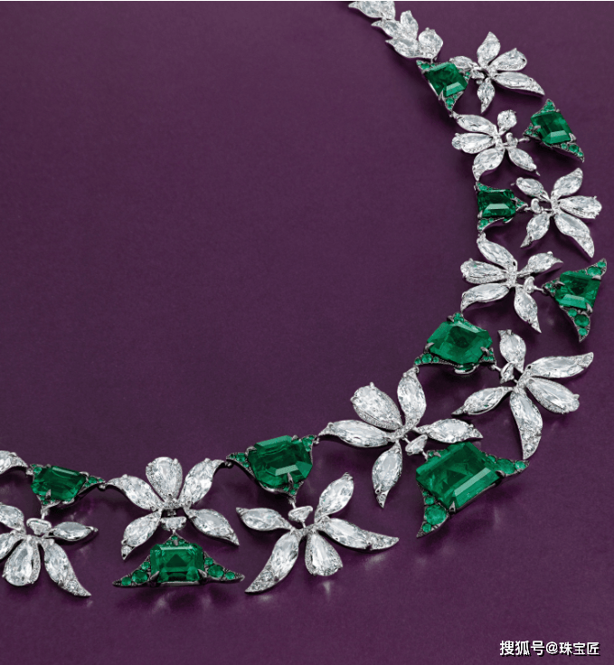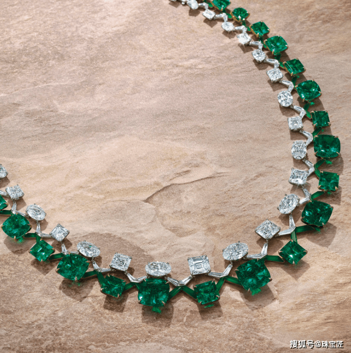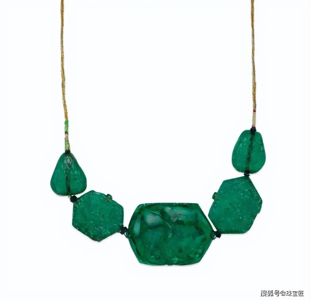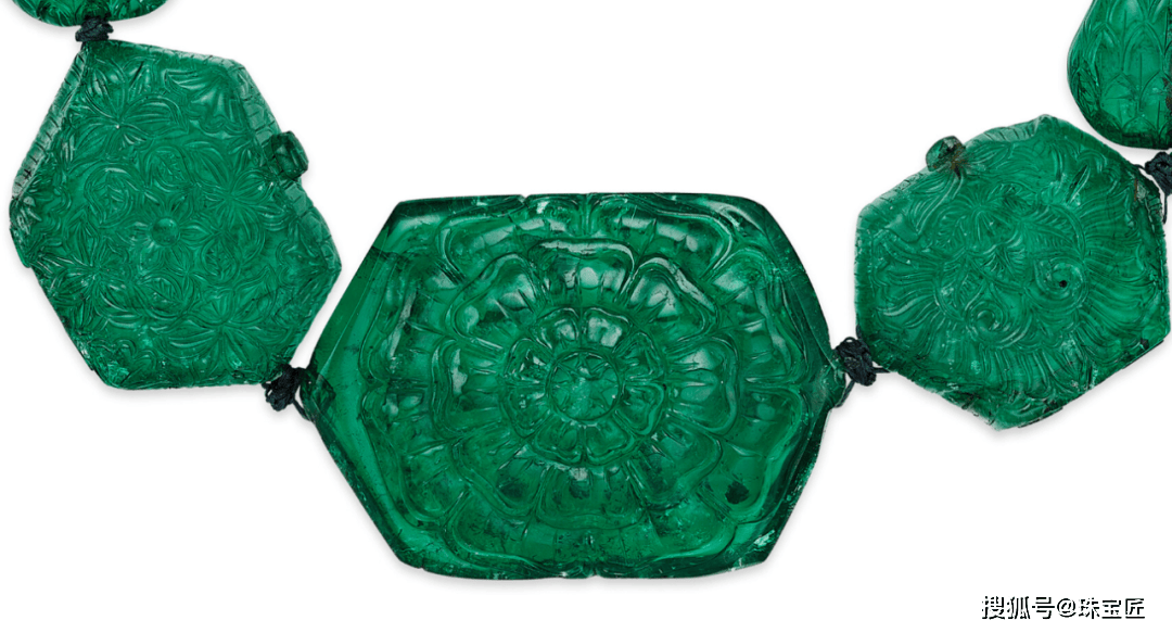 项链的设想灵感源自叙利亚古城帕尔米拉的棕榈叶意象,探秘哥伦比亚宝藏!位列祖母绿拍卖榜TOP7的雕花祖母绿项链。