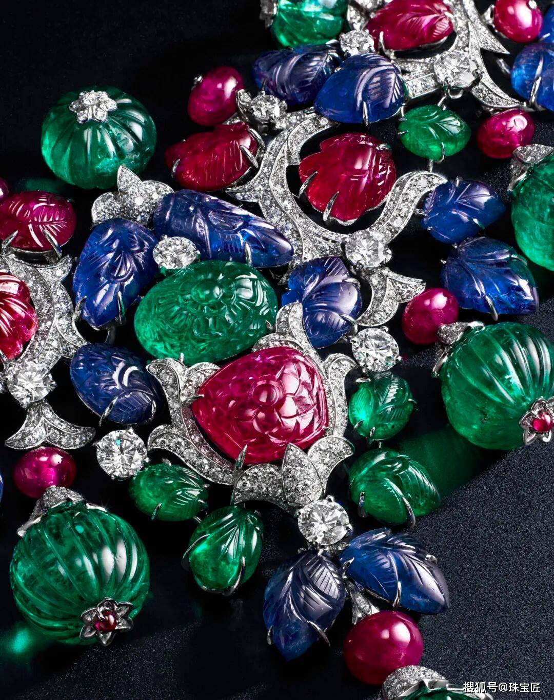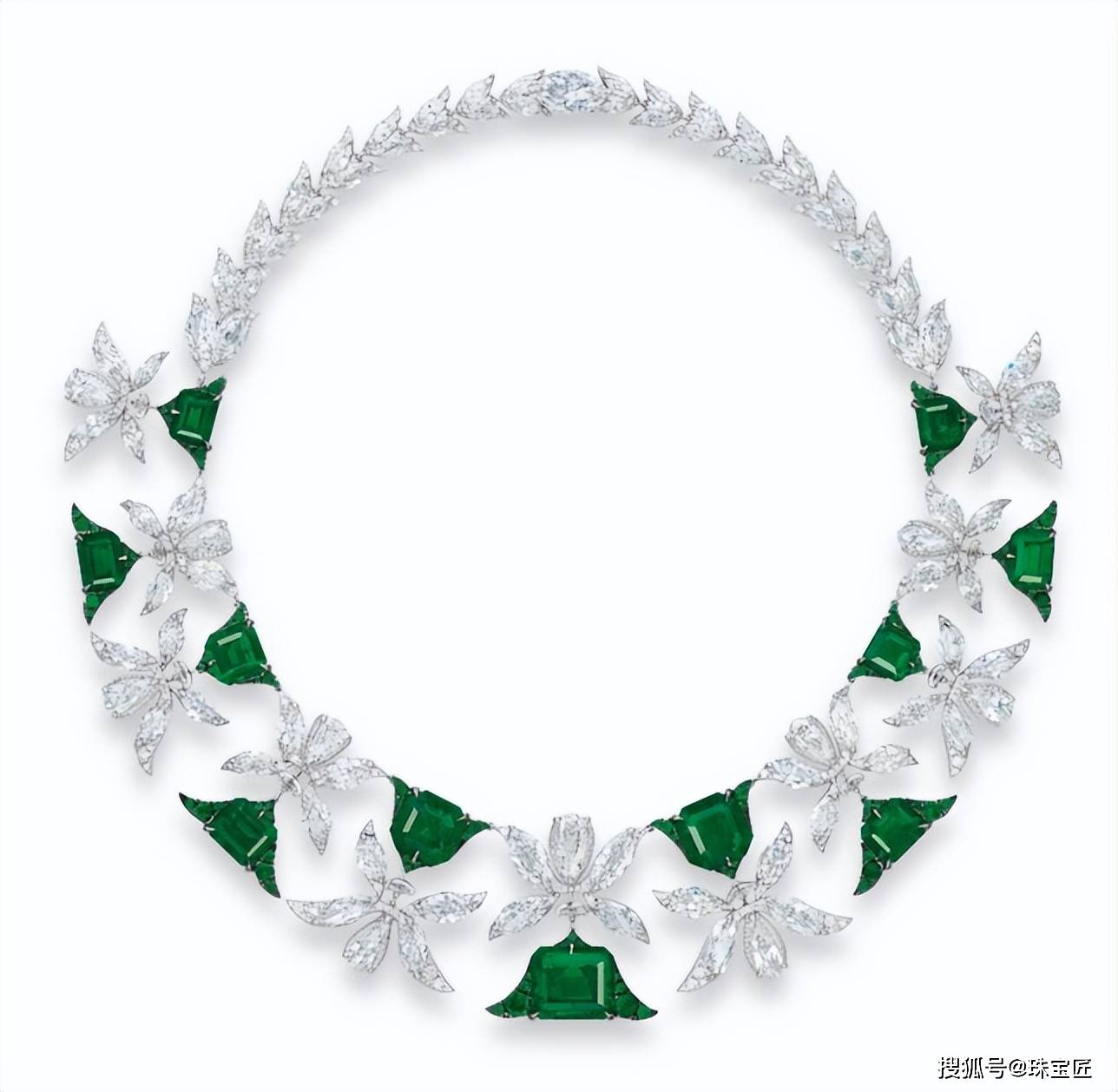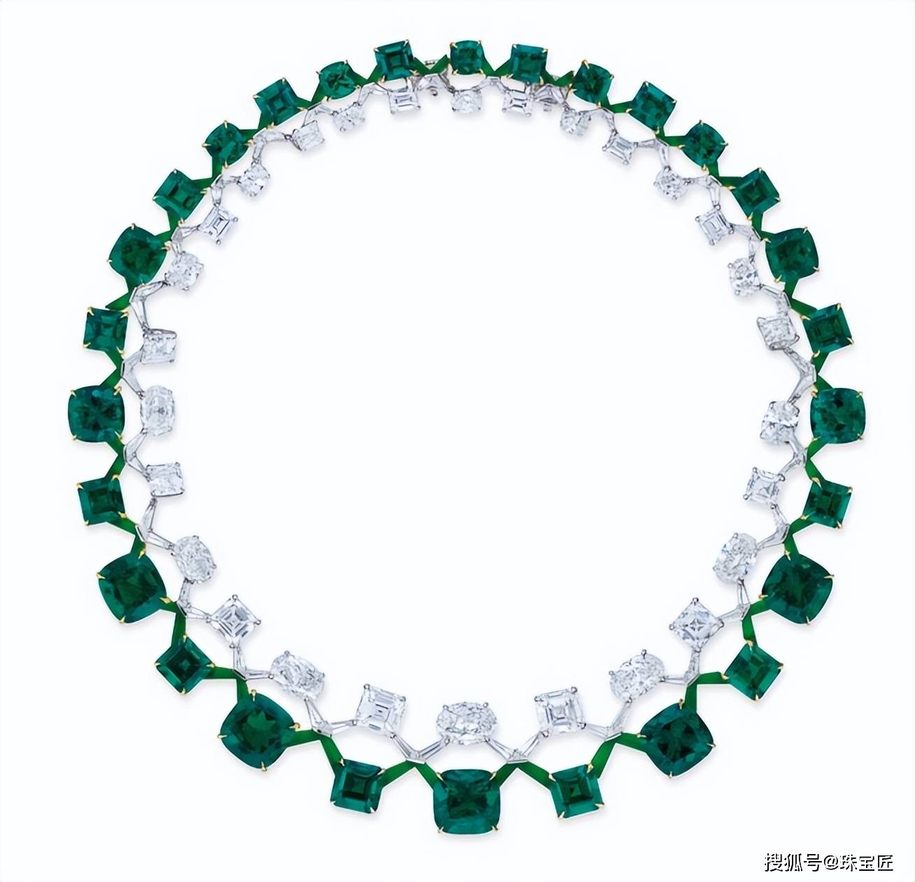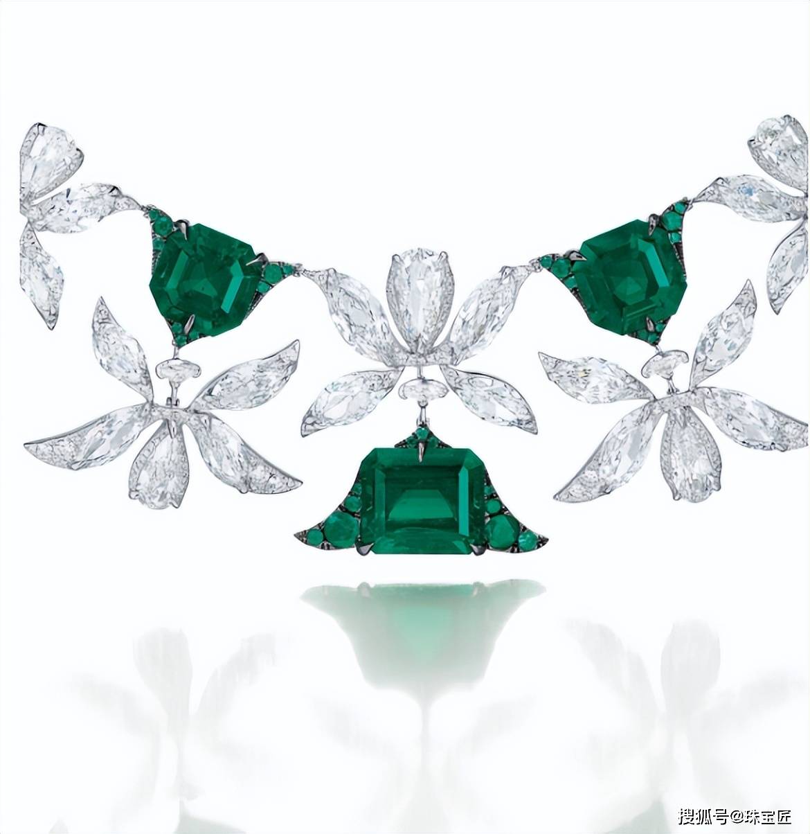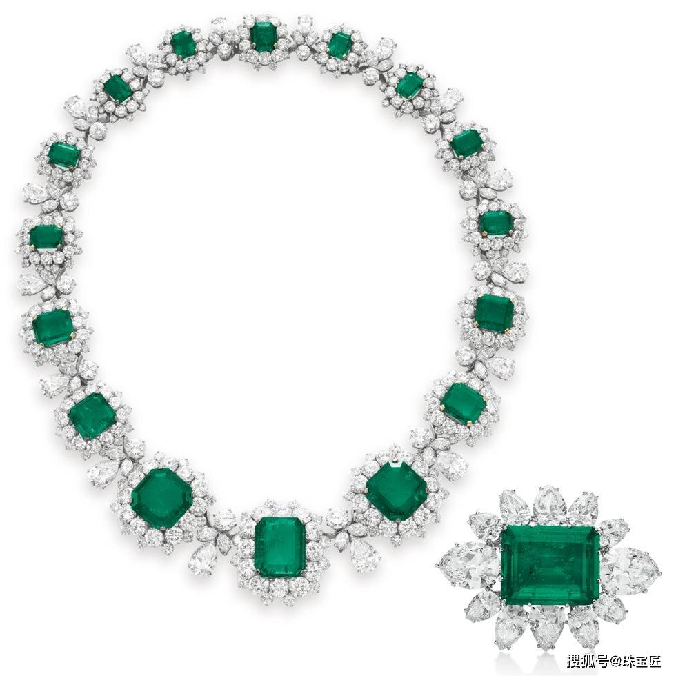 项链的设想灵感源自叙利亚古城帕尔米拉的棕榈叶意象,探秘哥伦比亚宝藏!位列祖母绿拍卖榜TOP7的雕花祖母绿项链。